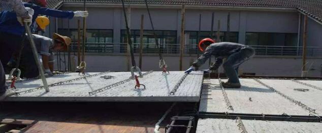 (2)吊裝過程中,距離作業層300mm處,稍停頓,調整、定位疊合板方向;吊裝過程中避免碰撞,停穩慢放,保證疊合板完好;