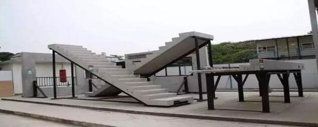 預制樓梯板安裝時,距離作業面500mm處稍停頓,根據樓梯板方向調整,就位時緩慢操作,避免樓梯板震折受損。