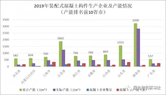 圖5 2019年裝配式混凝土構件生產企業及產能情況(產能排名前10省市)