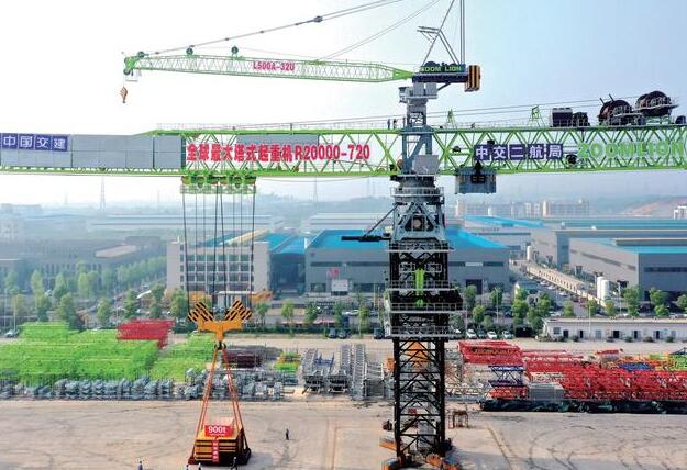 中交二航局常泰大橋項目R20000-720超大型上回轉移動平衡重智能塔機(馬弟/攝)